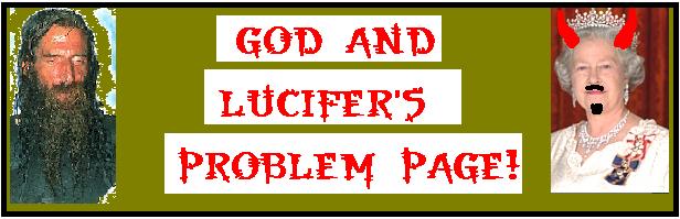...is a problem halved, as the old saying goes. But sometimes -just sometimes- friends, family... heck, even alcohol, can't help. That's why we have included this page for you, the angst-ridden youth of today. After much negotiation (well, bribery and the old drugs-in-drink trick), we have managed to secure the services of two of the leading authorities on everything: God and Lucifer! To ask them a question, please leave a message on the guestbook or email and it shall be answered asap. Take care, kids!
